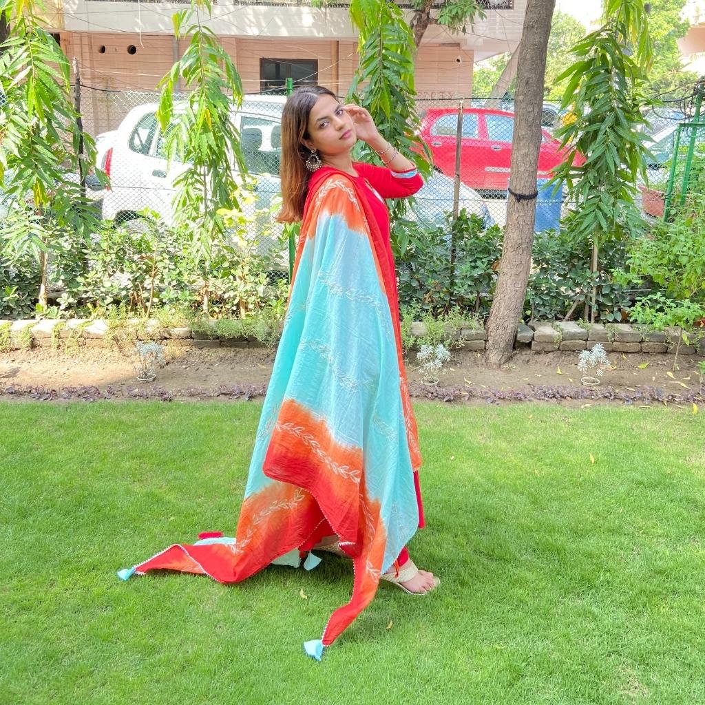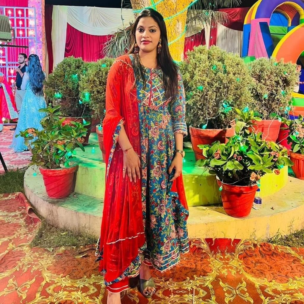 RED BLOSSOM COTTON ANARKALI SUIT SET
