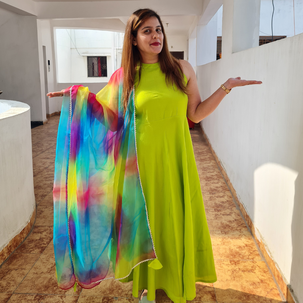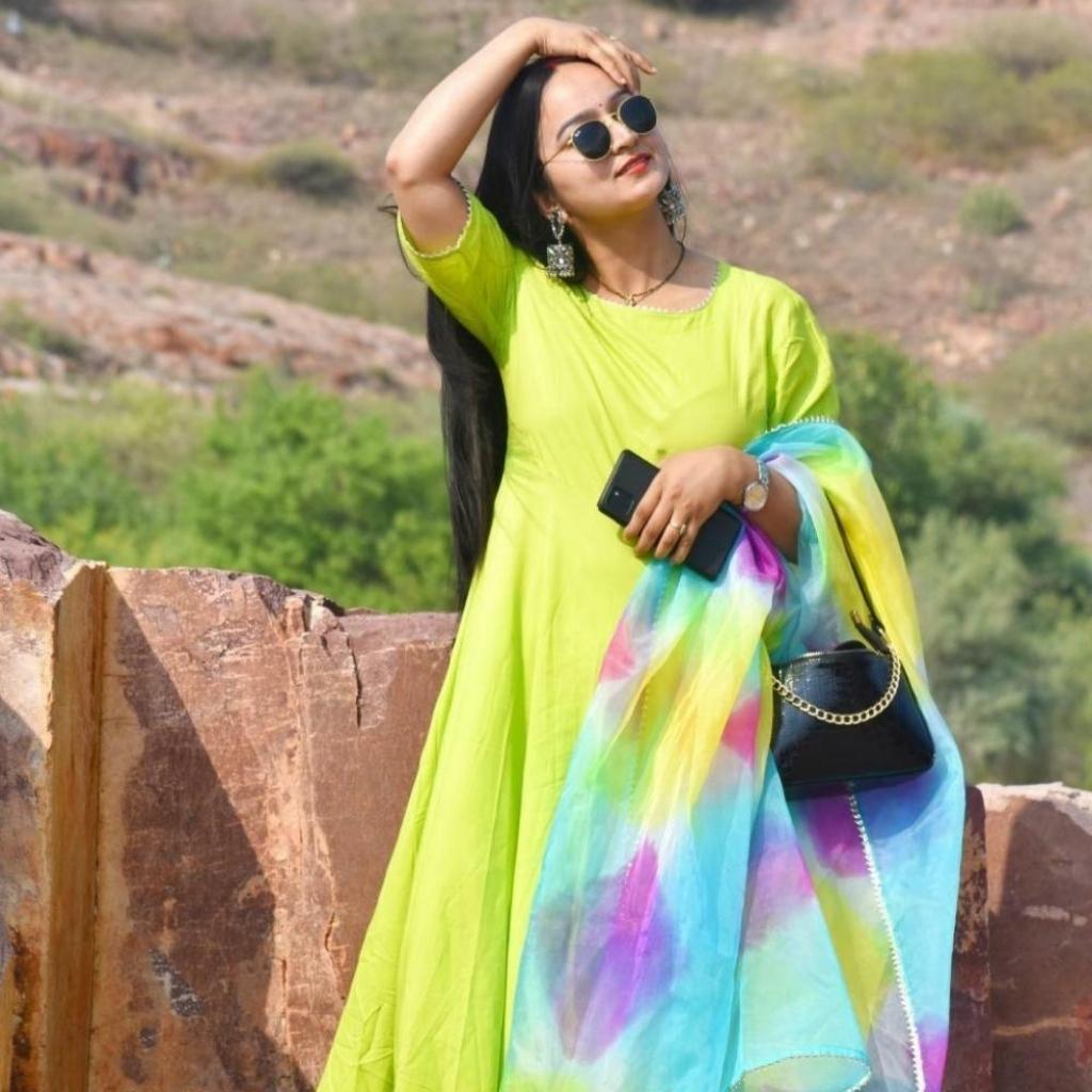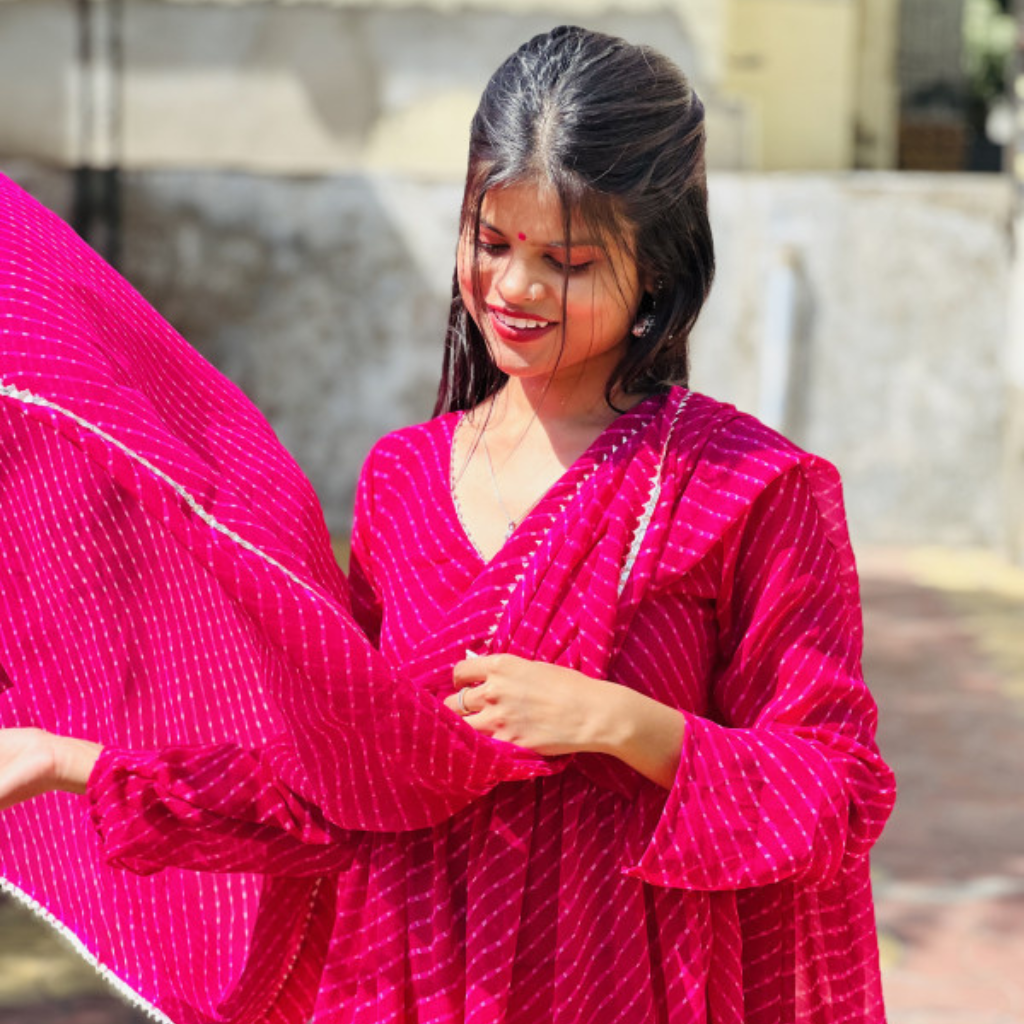 GLOWRA CREWAM CHANDERI ANARKALI SET
