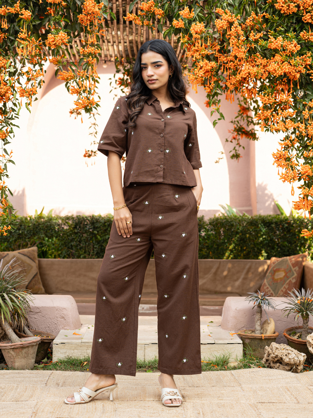 OCTIRA BROWN DORI WORK PLAZZO SET