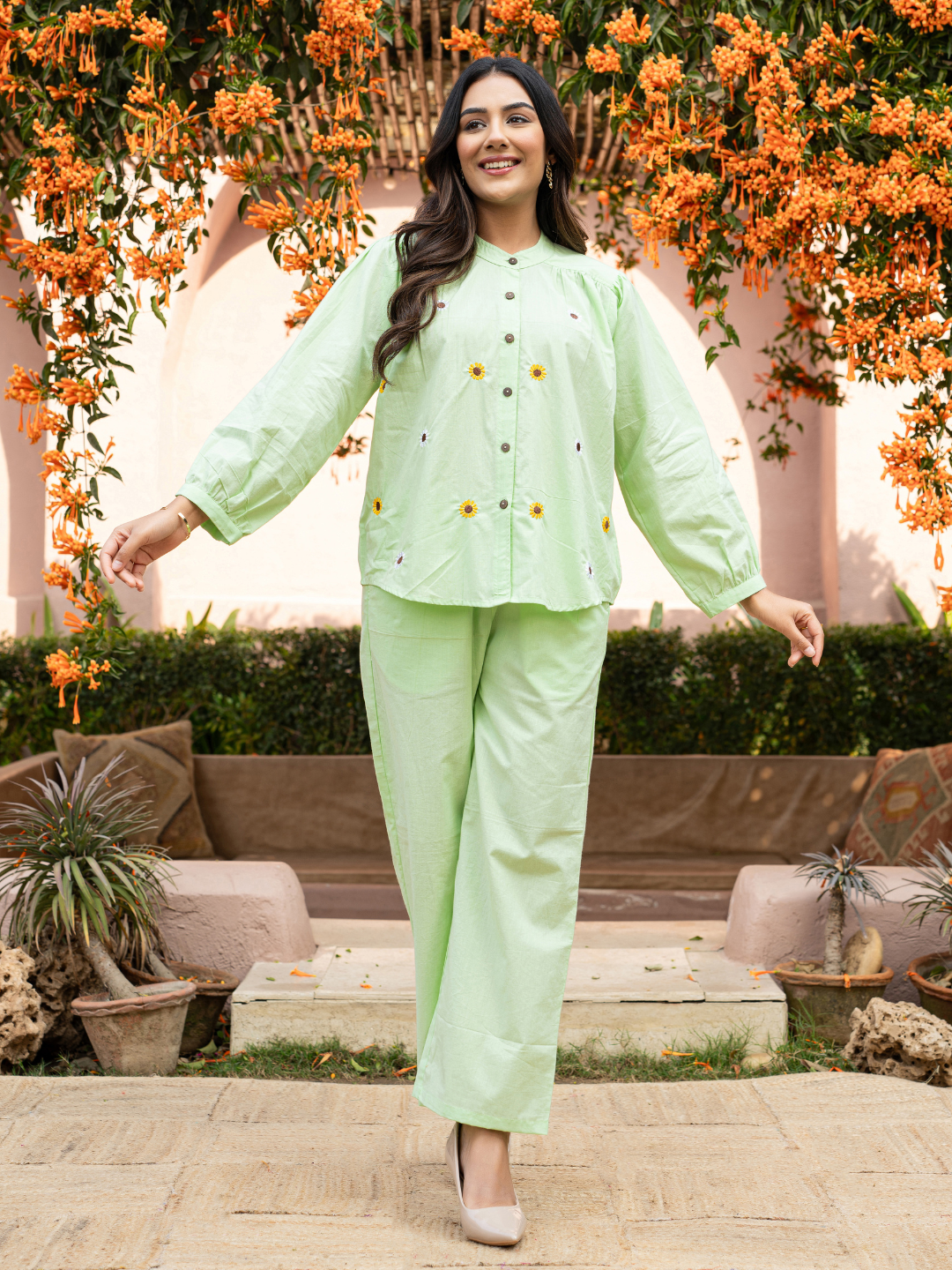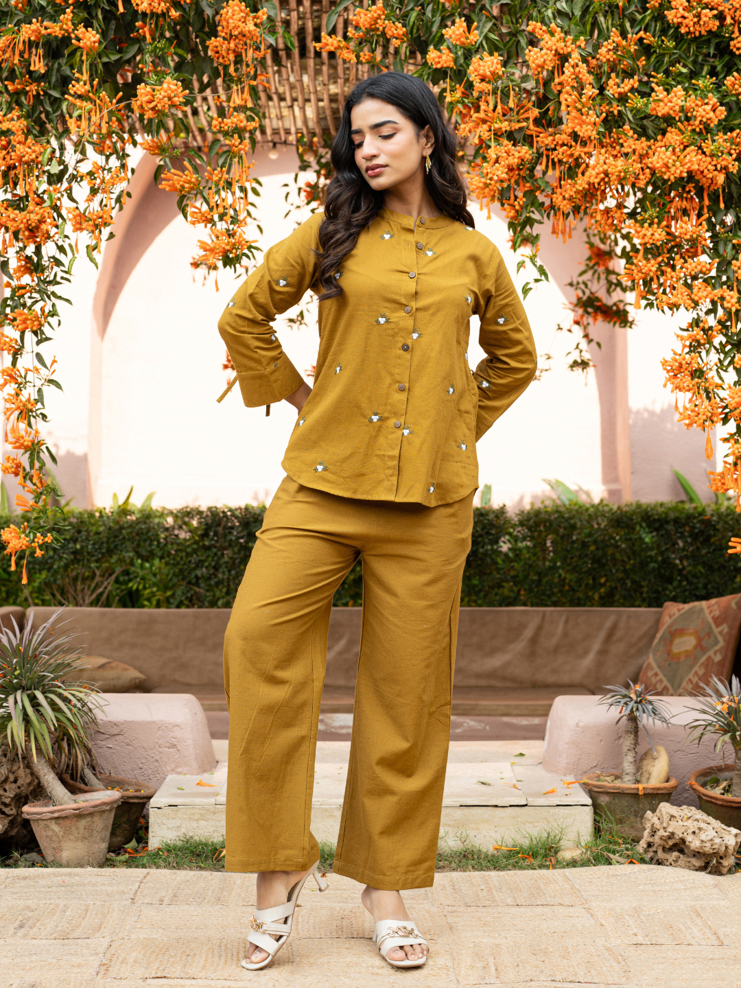 AURRA MUSTARD EMBROIDERED CORD SET