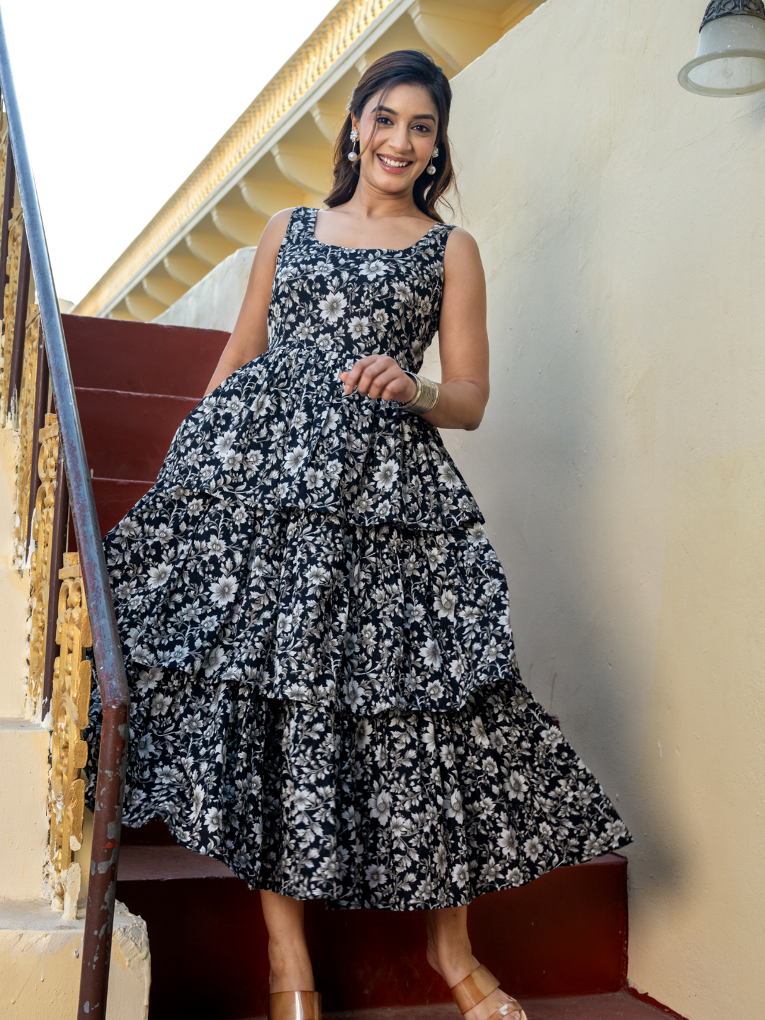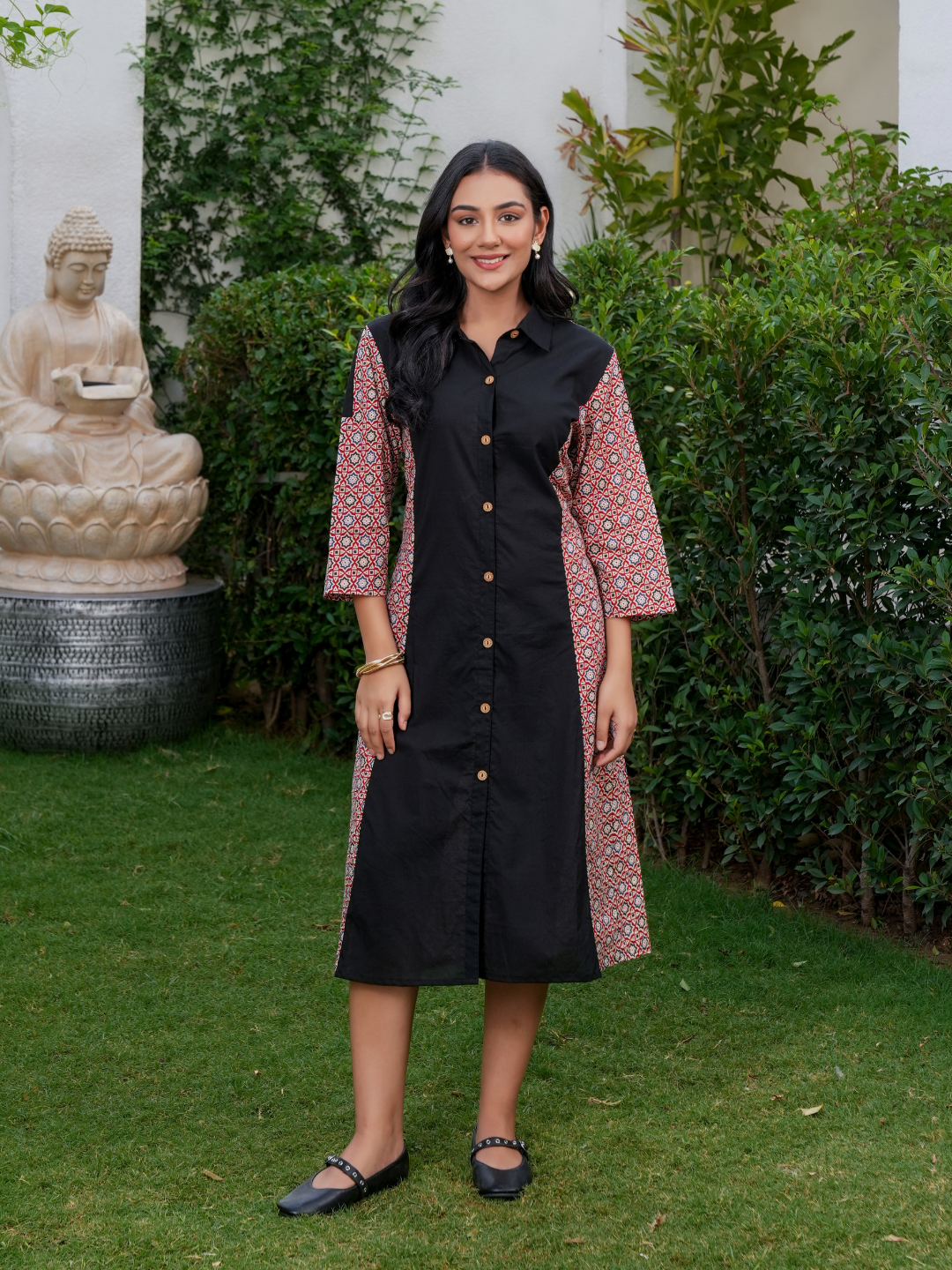 PHOOLWARI NOIR COTTON DRESS
