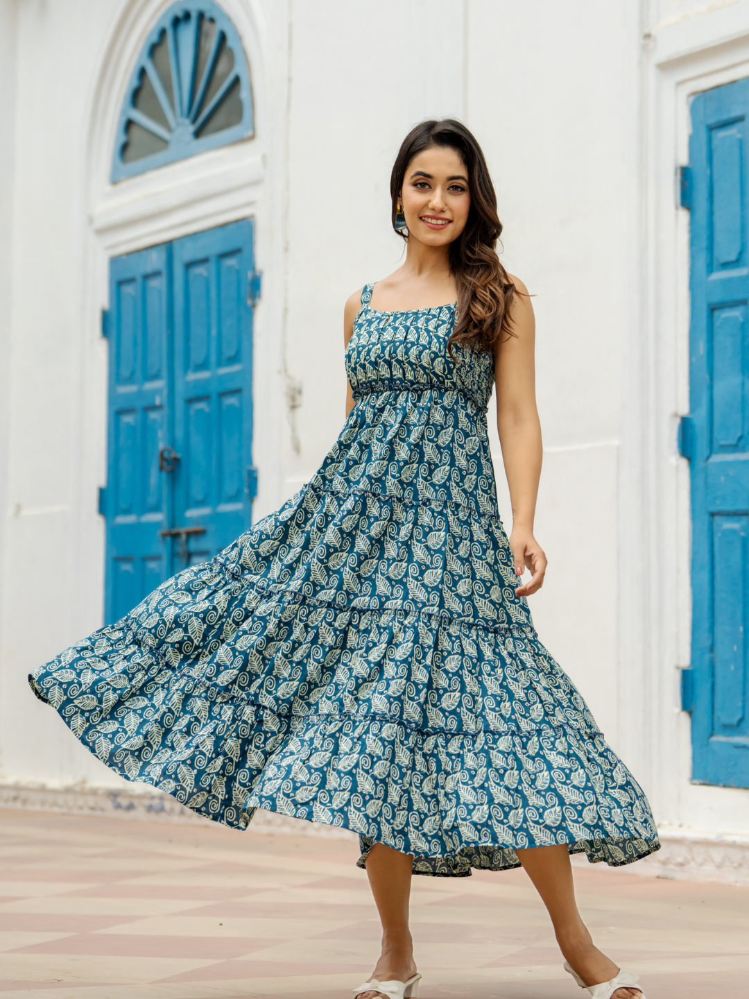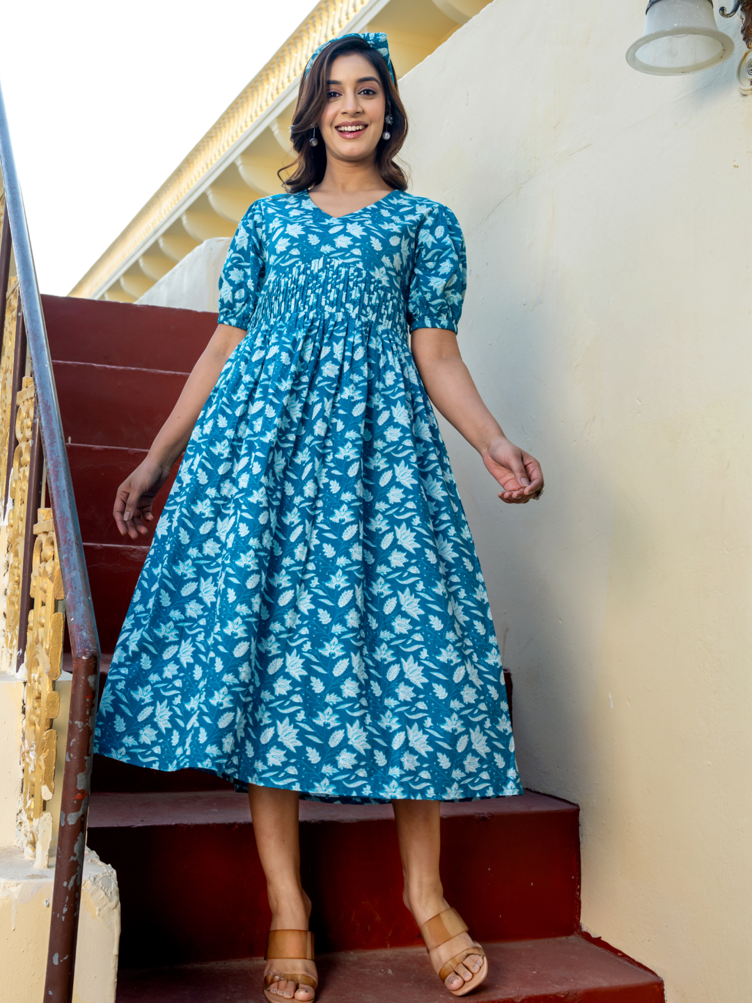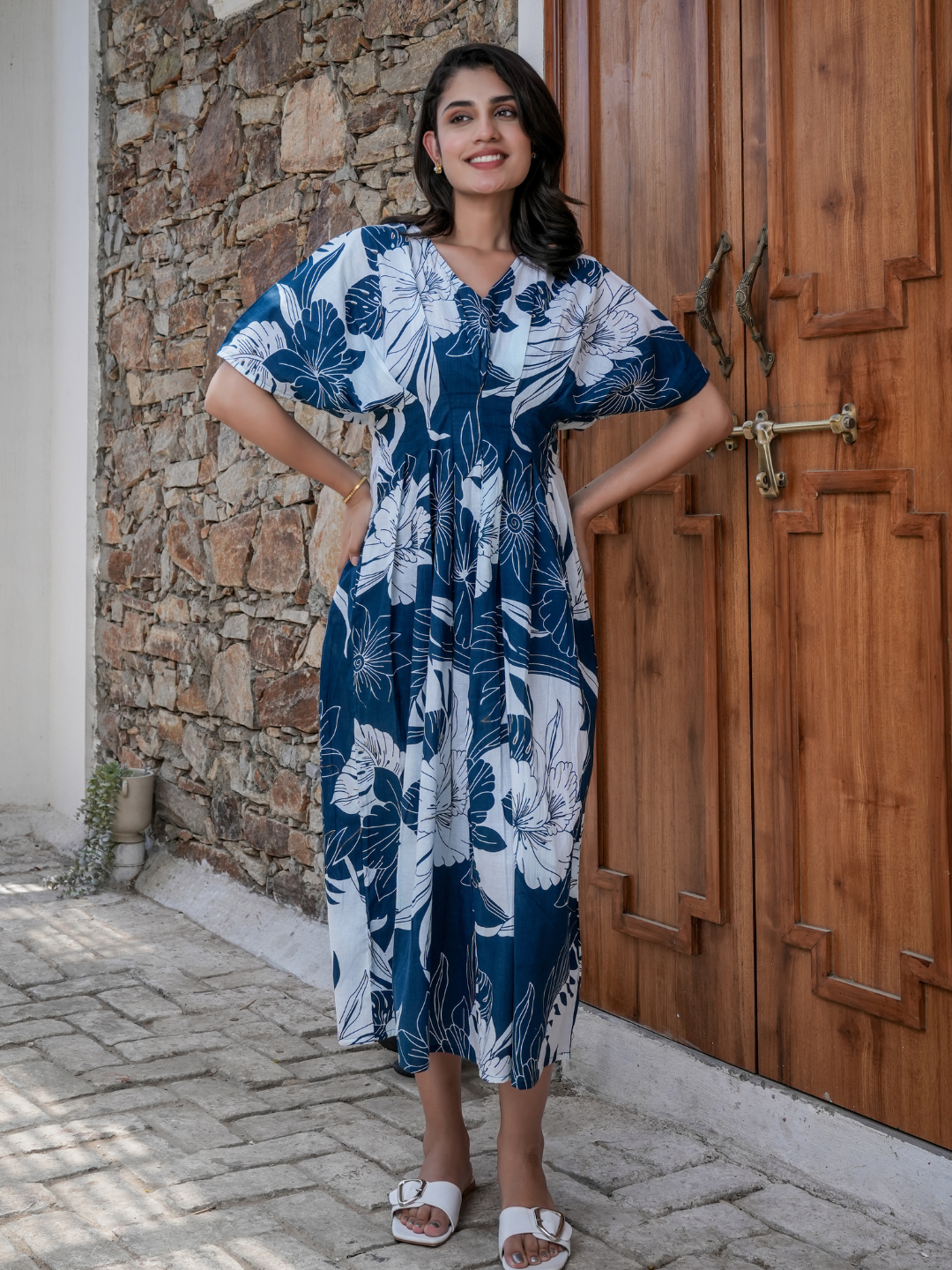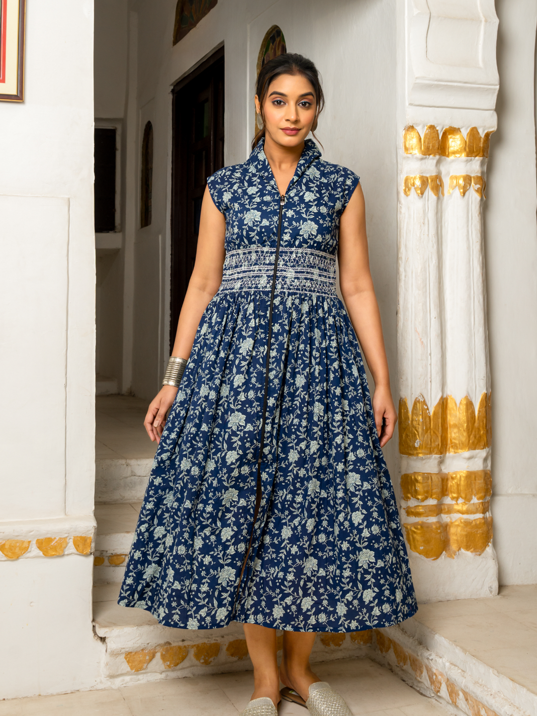 INDIGO FLORAL COTTON DRESS