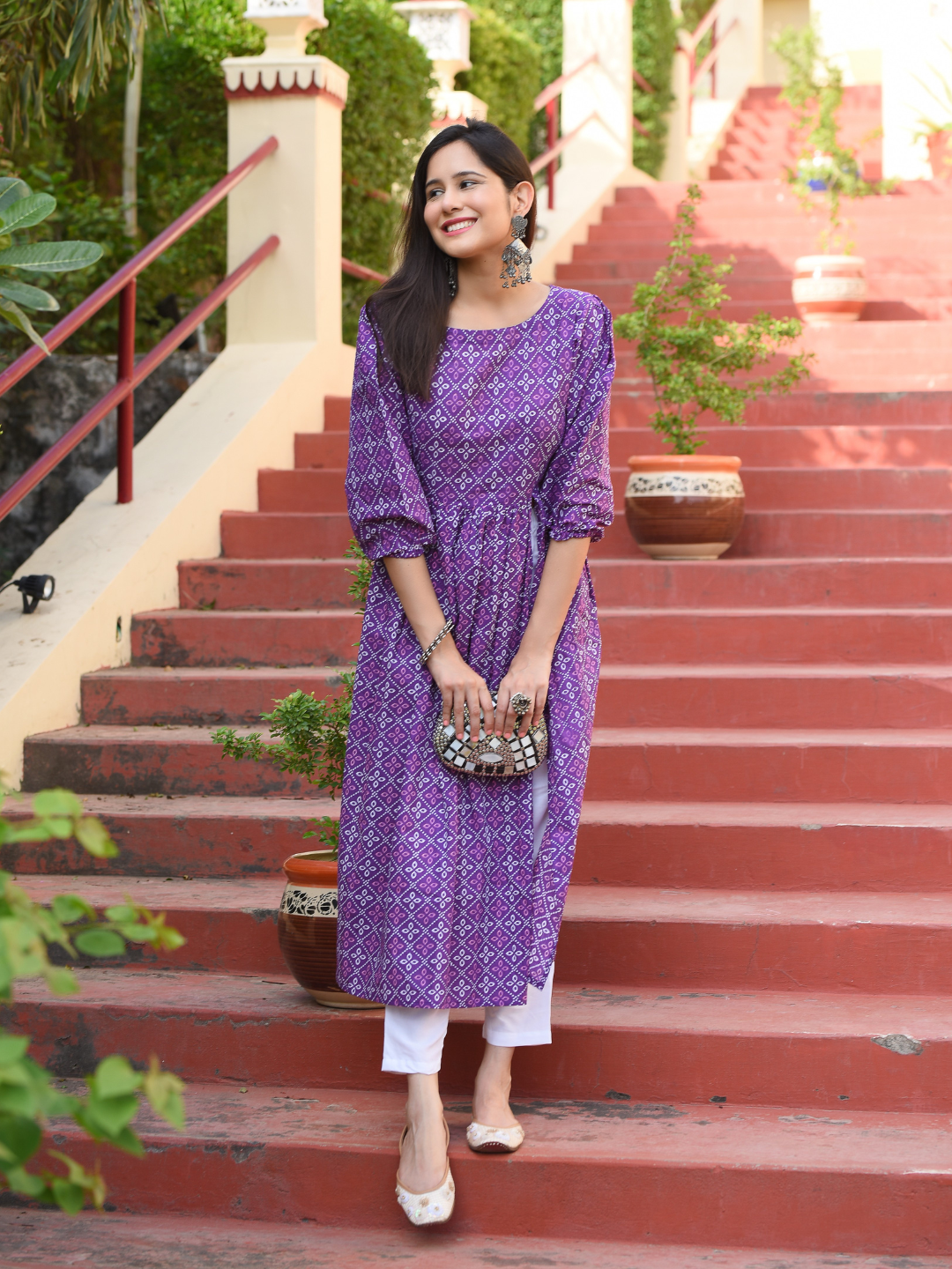 PURPLE BANDHANI COTTON DRESS