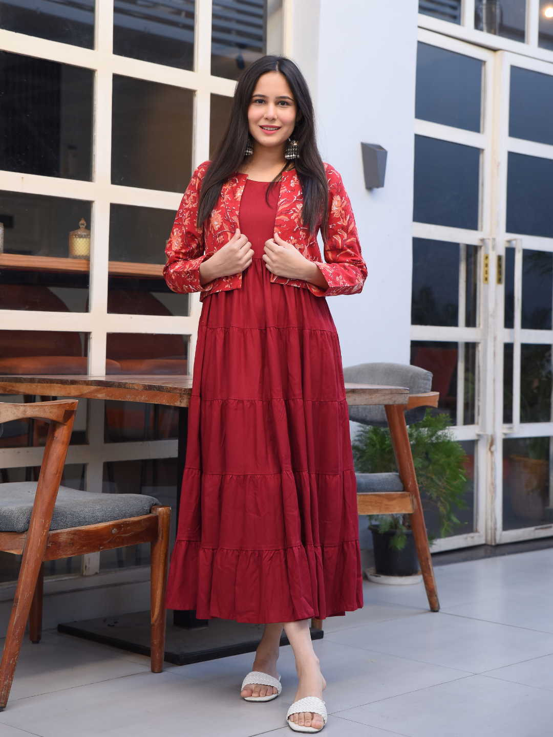 MAROON COTTON JACKET-KURTA DRESS