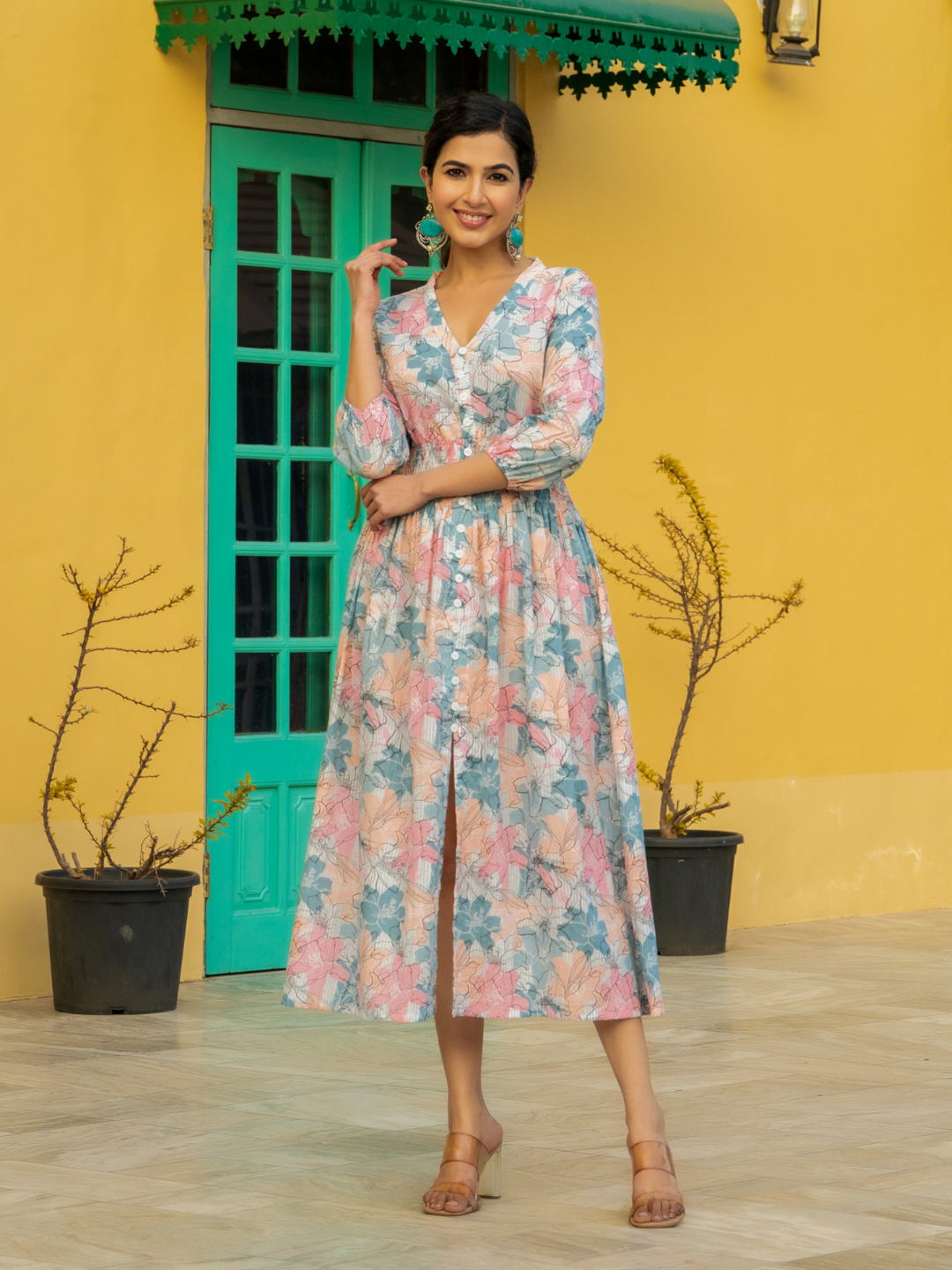 FLORAL BREEZE TEAL DRESS