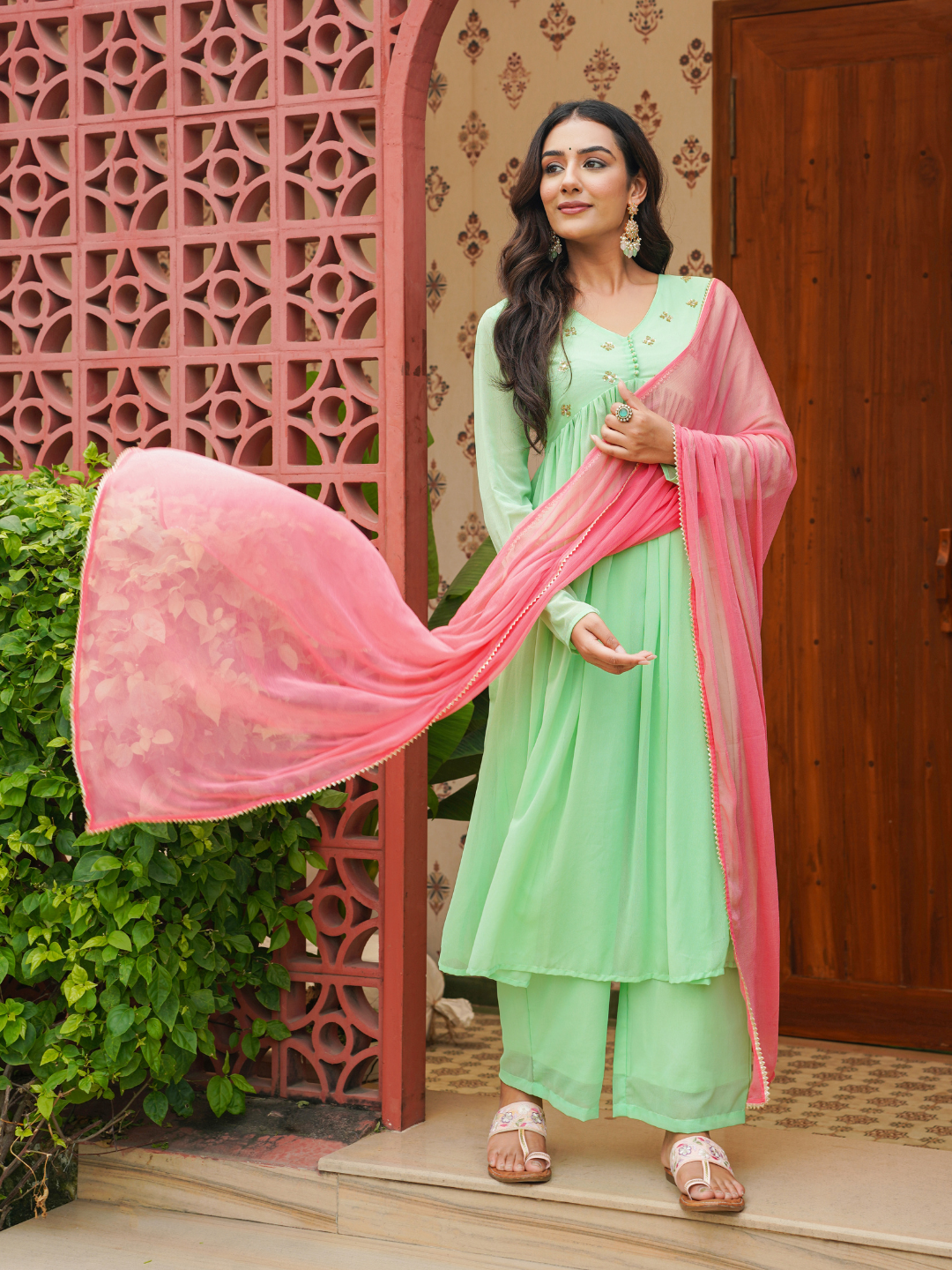 MINT SEQUIN GEORGETTE ANARKALI SET