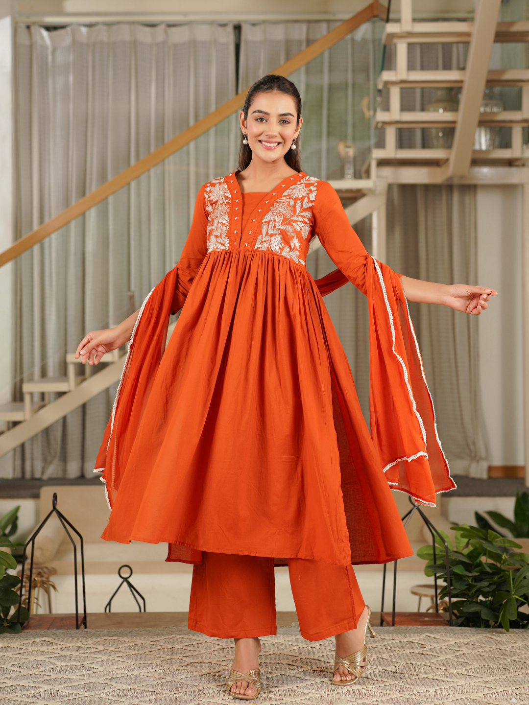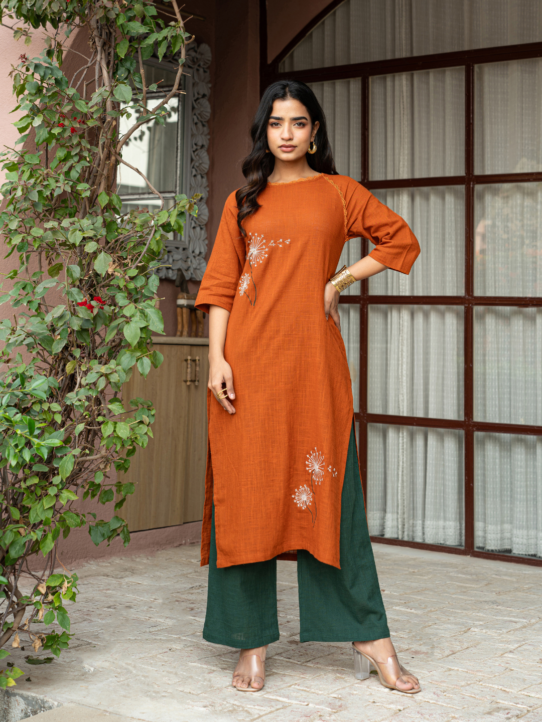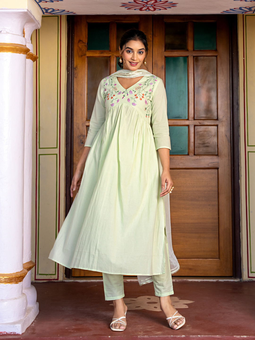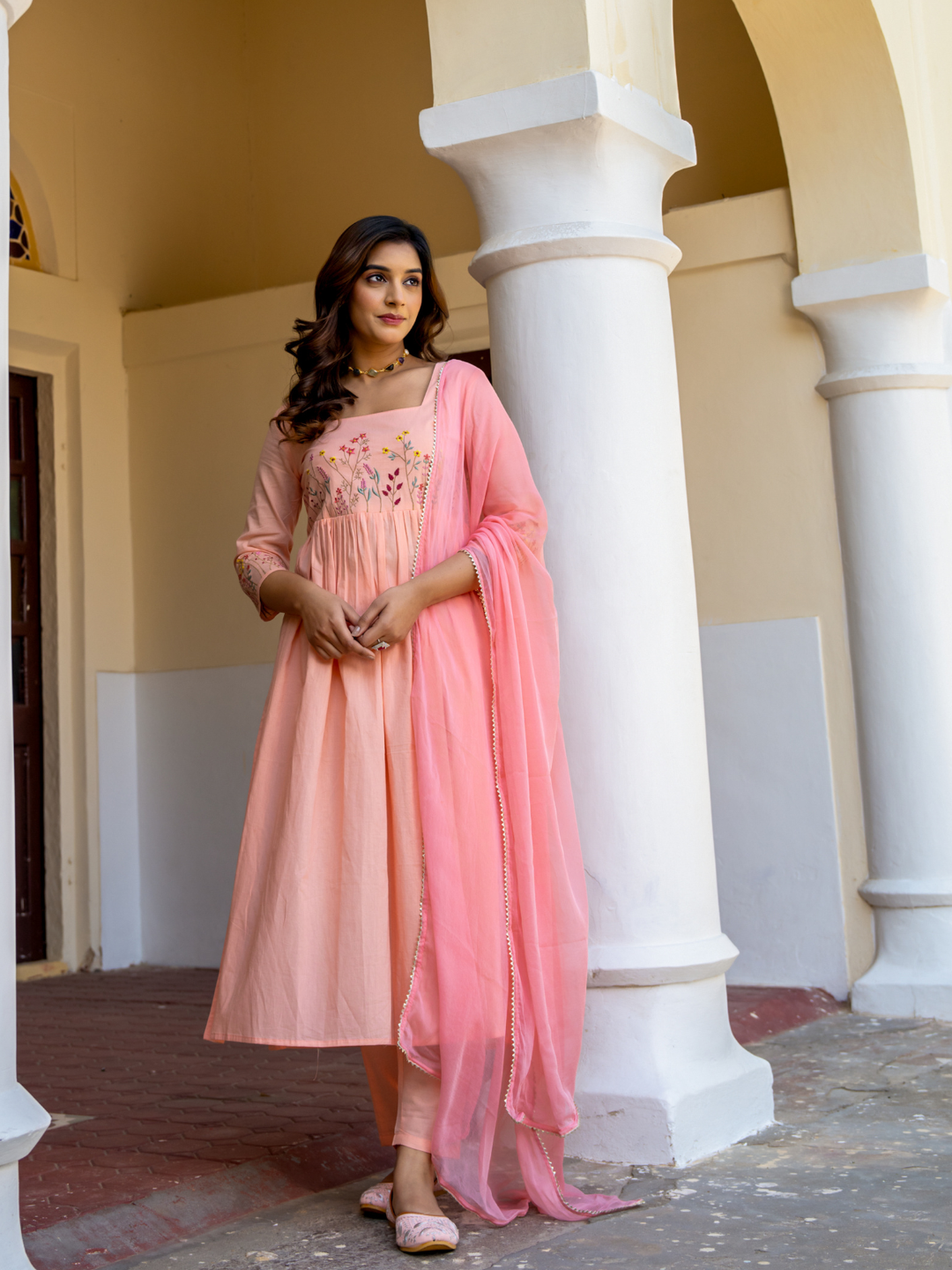 MORVYA EMBROIDERED COTTON KURTA SET