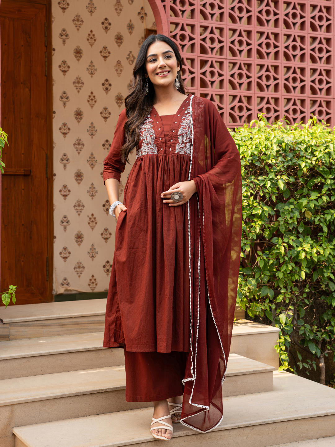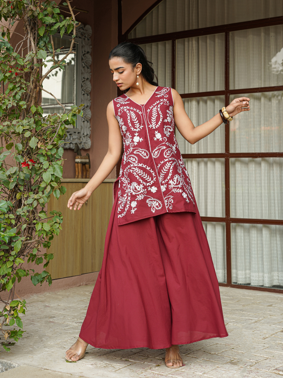 RUBERRA MAROON AARI WORK PLAZZO SET