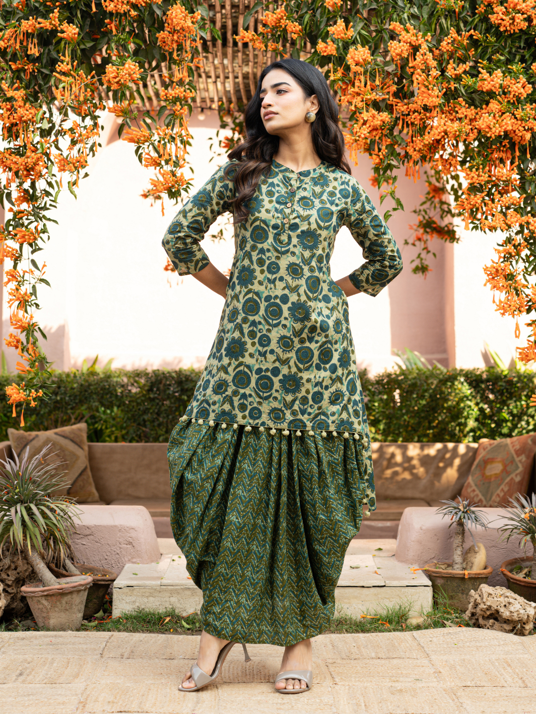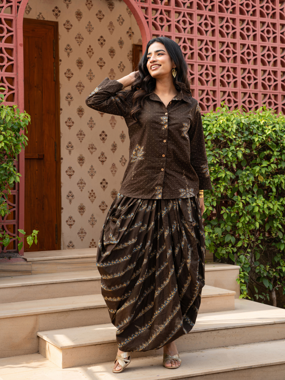 AVIRYA FOLK MOTIF DHOTI SKIRT SET