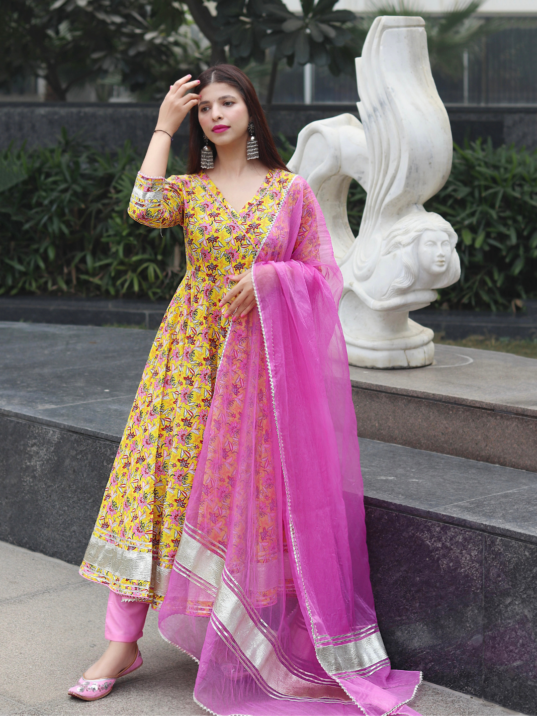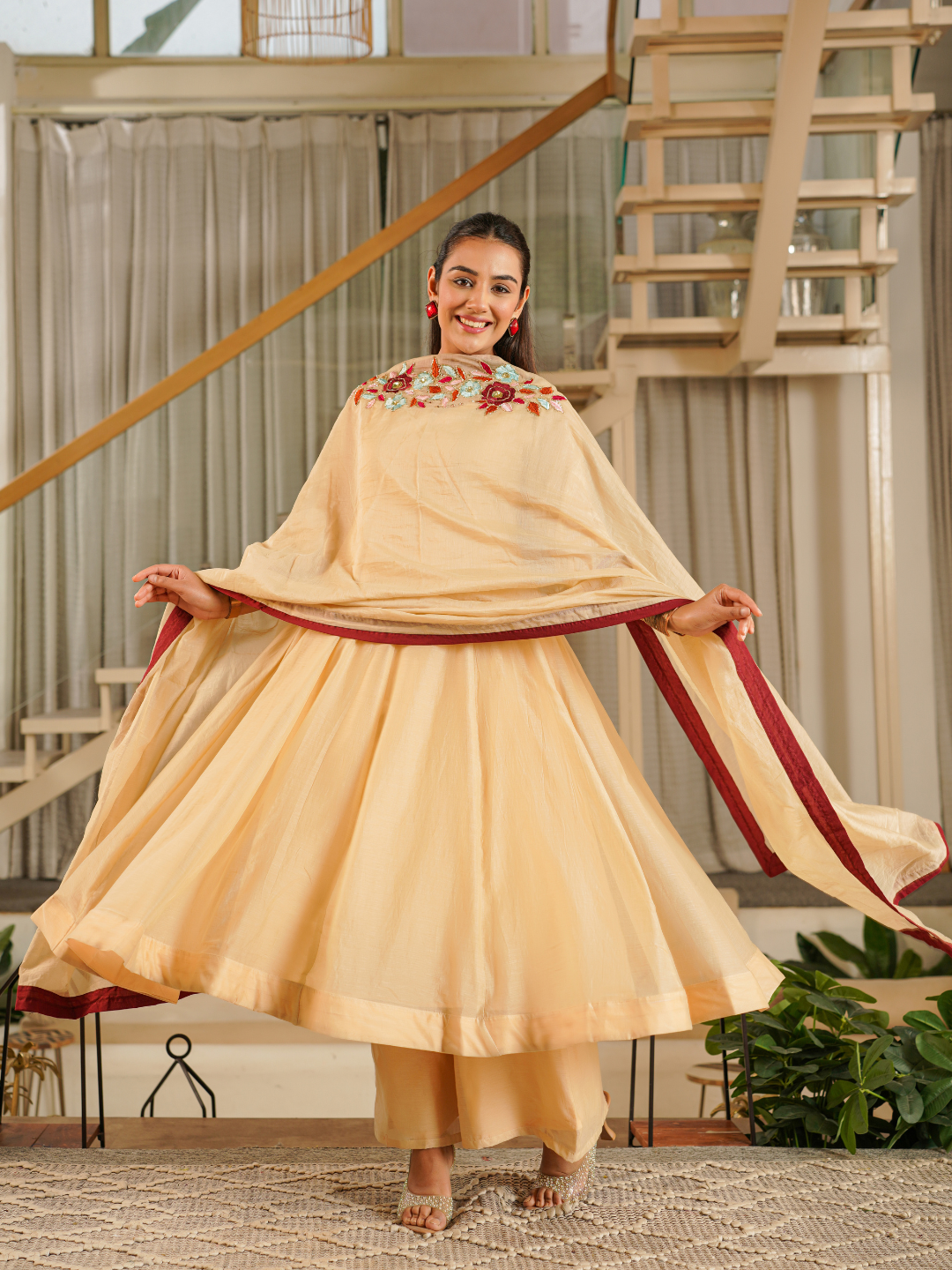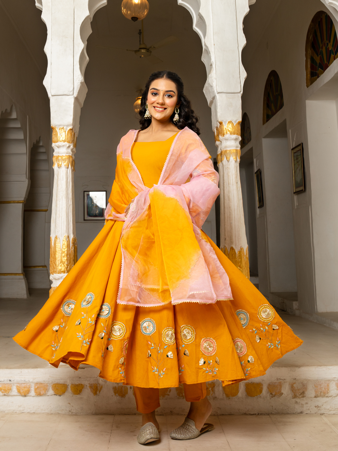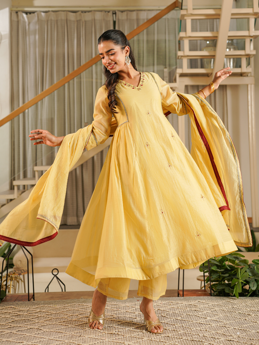 FLOWY MUSTARD SILK ANARKALI SET