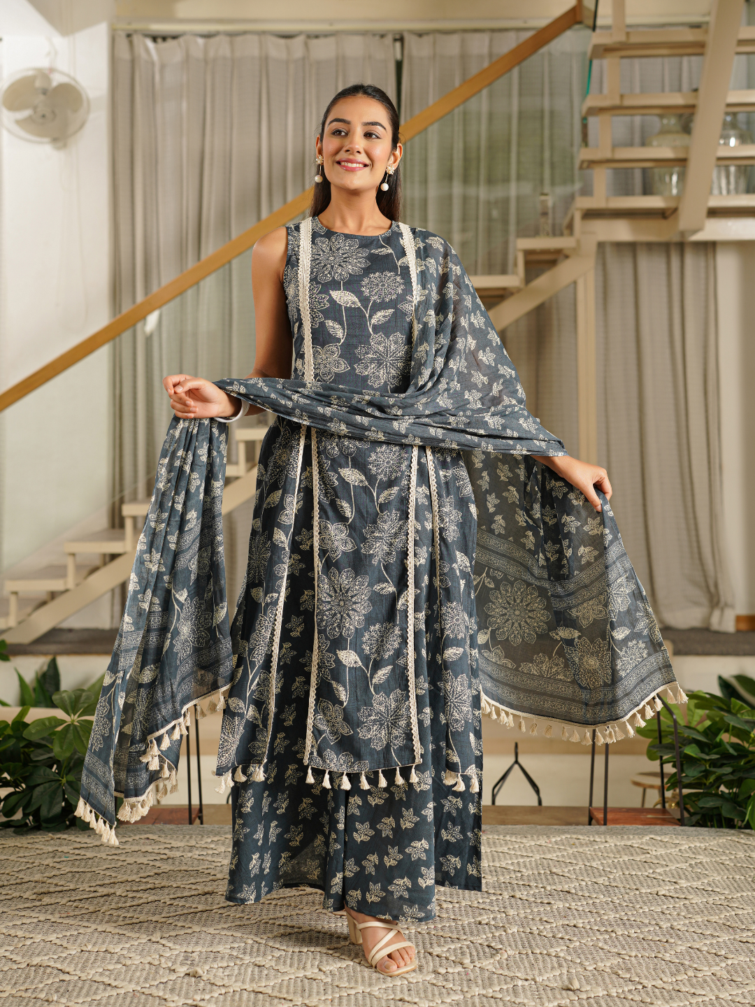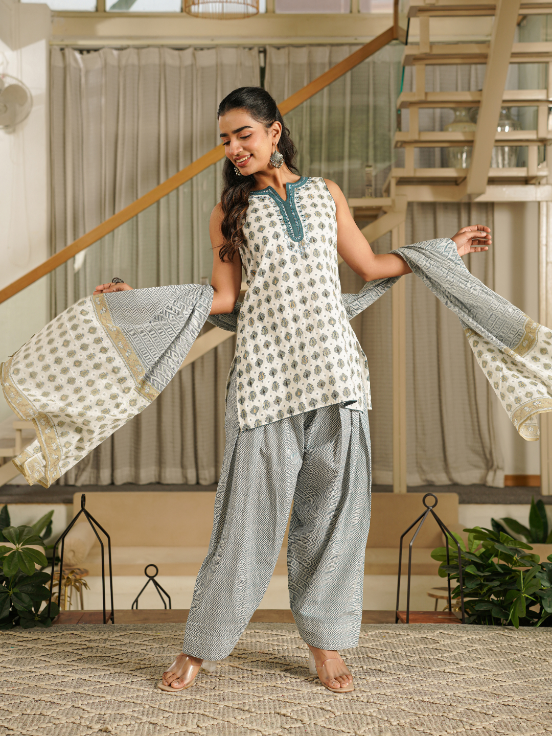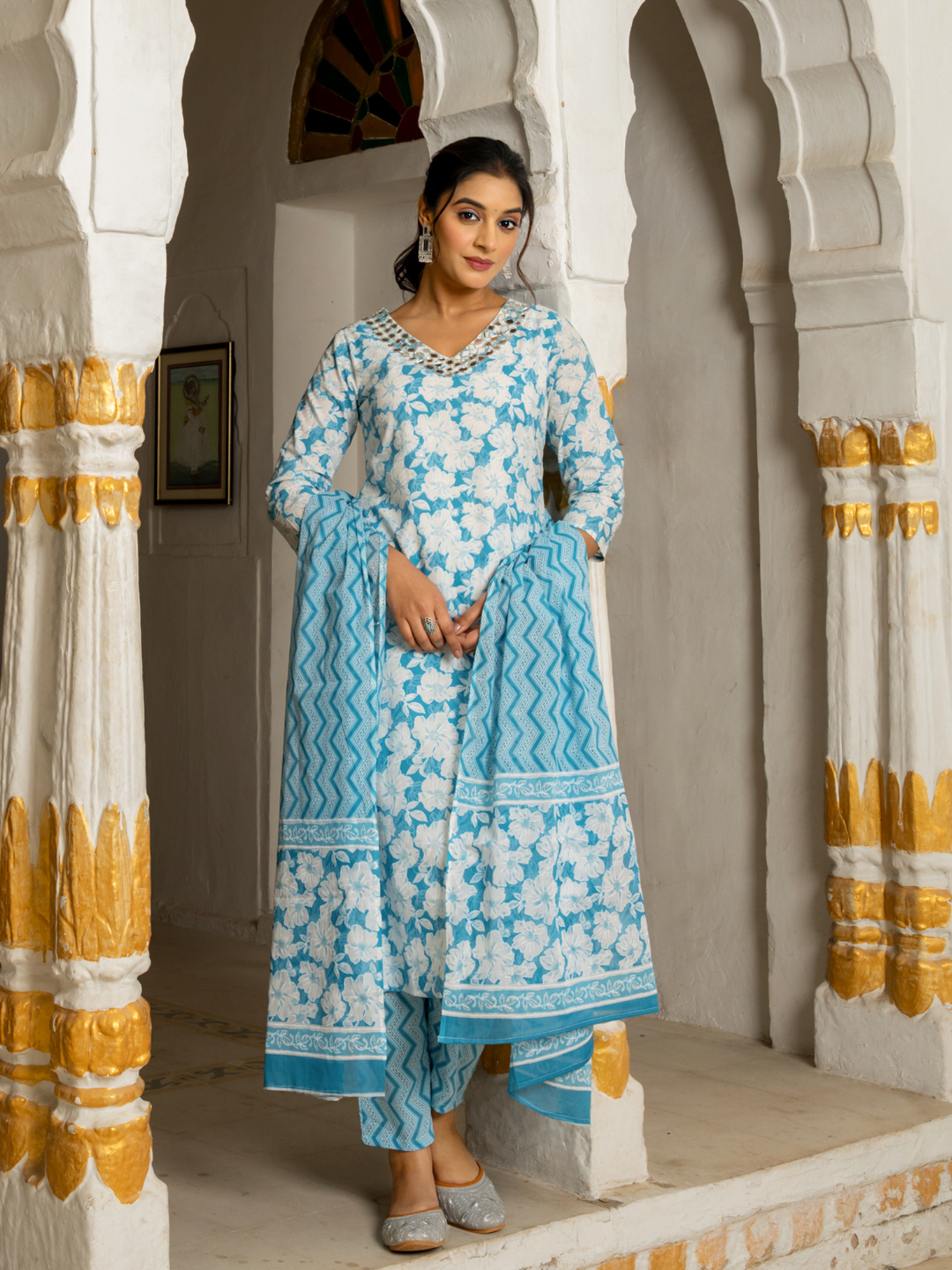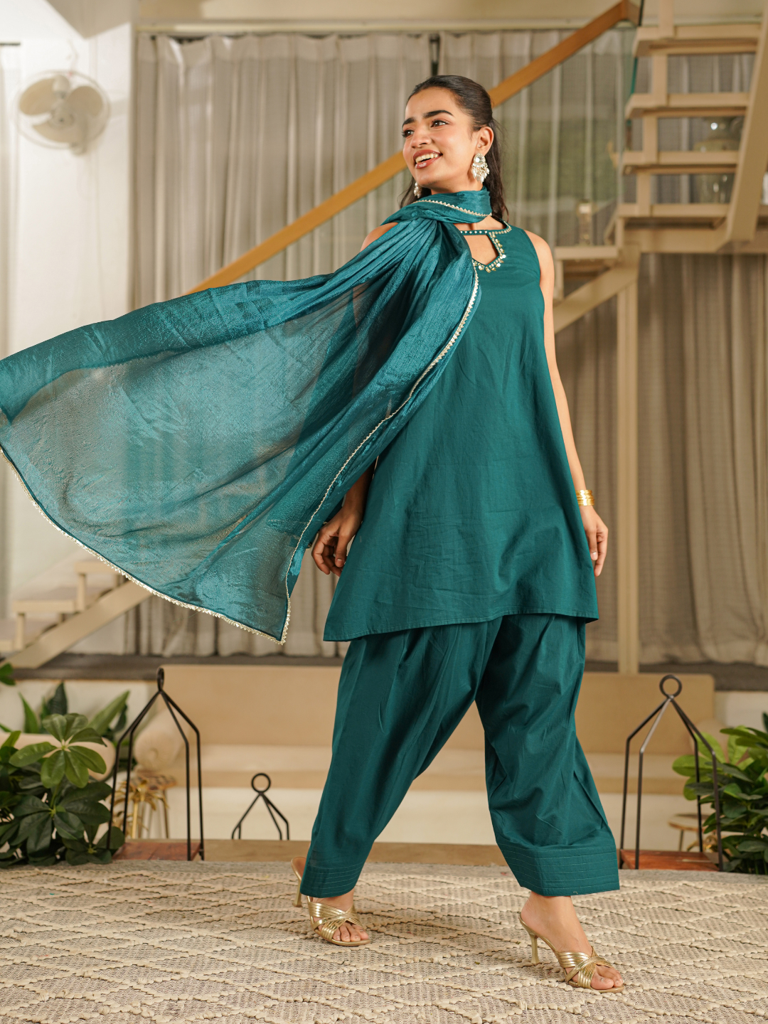 ZAREEL TEAL COTTON FARSI SET