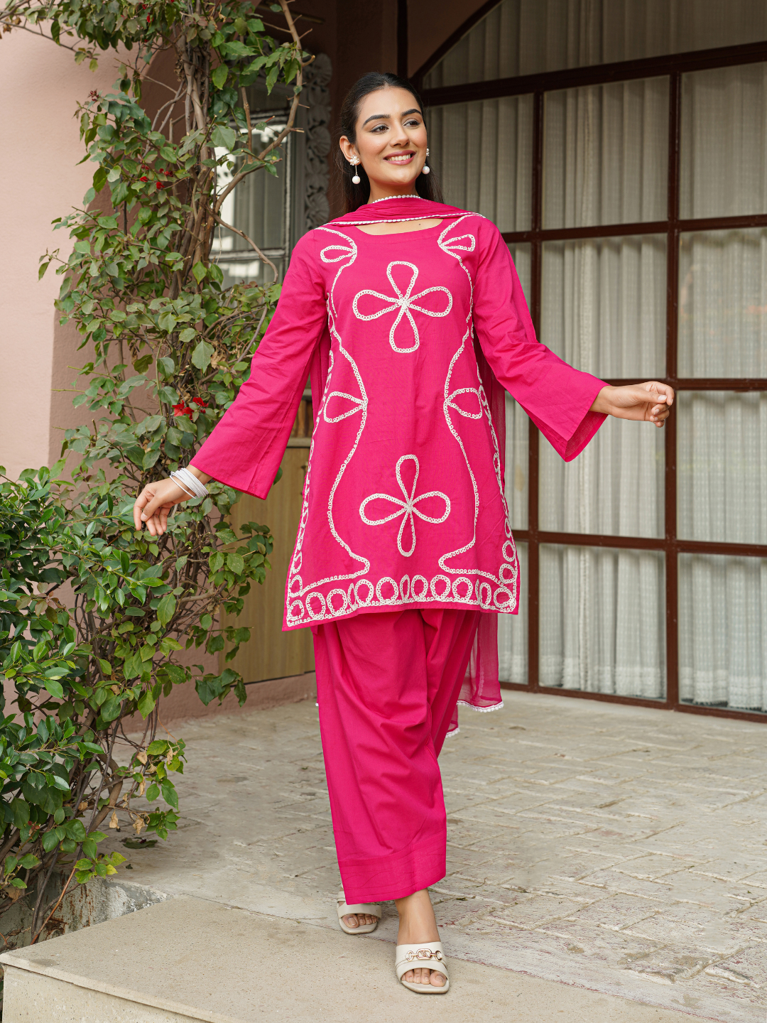 PINK FLORAL HANDWORKED SUIT SET