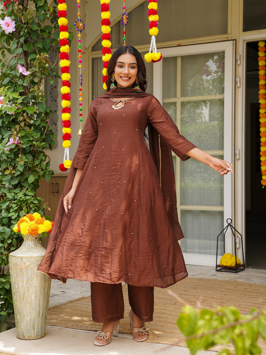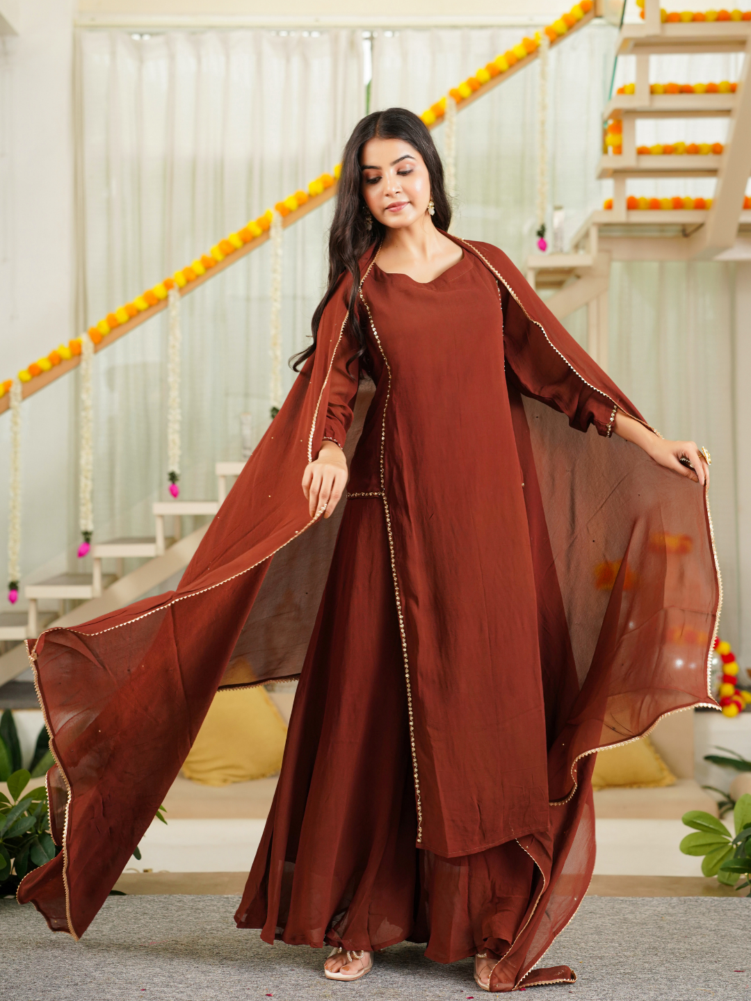 ELEGANT BROWN SHARARA SET