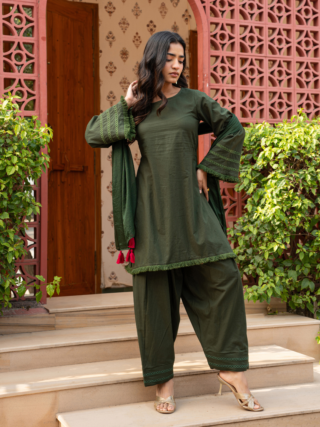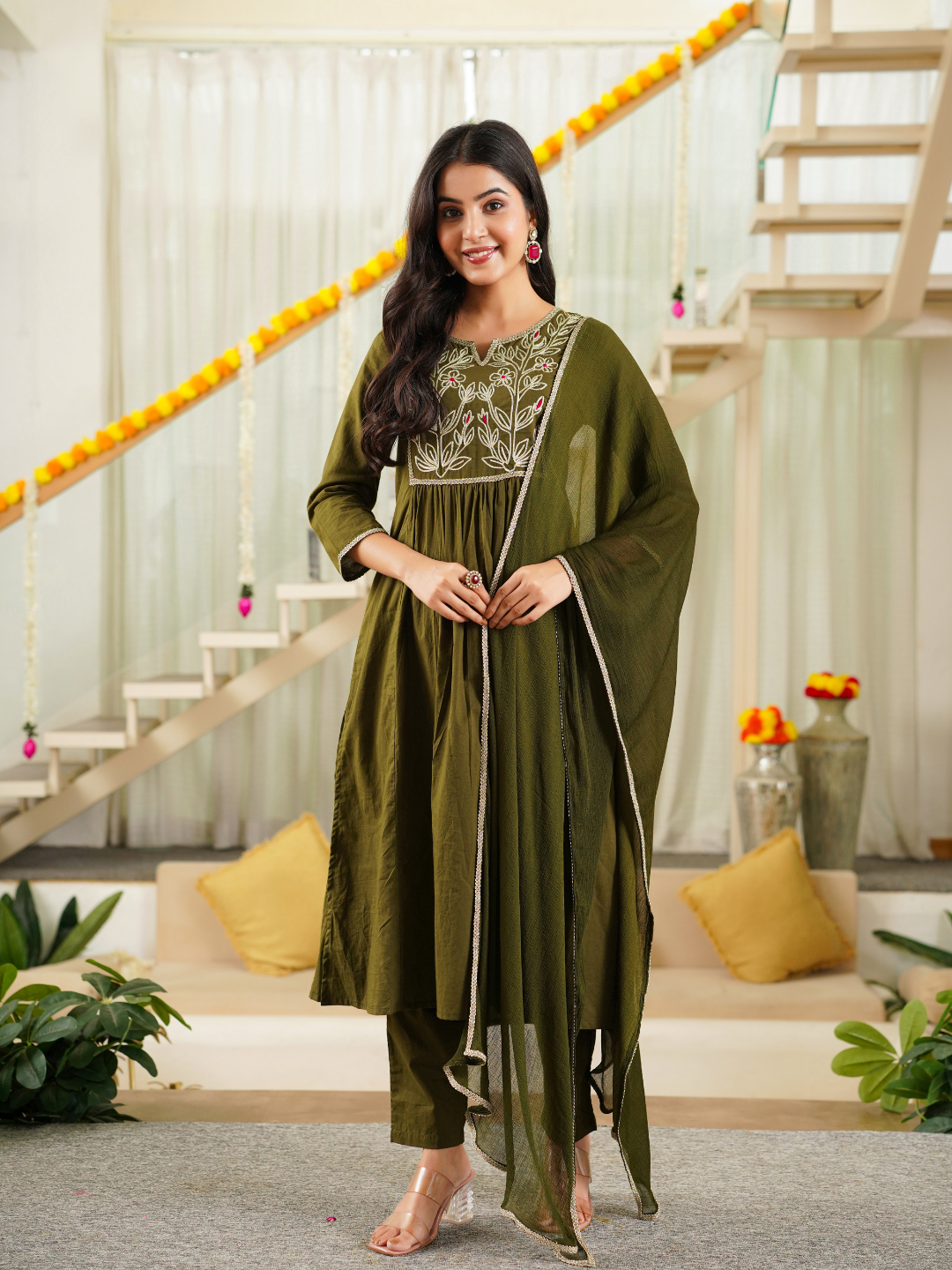MEHVARA OLIVE COTTON FARSI SET
