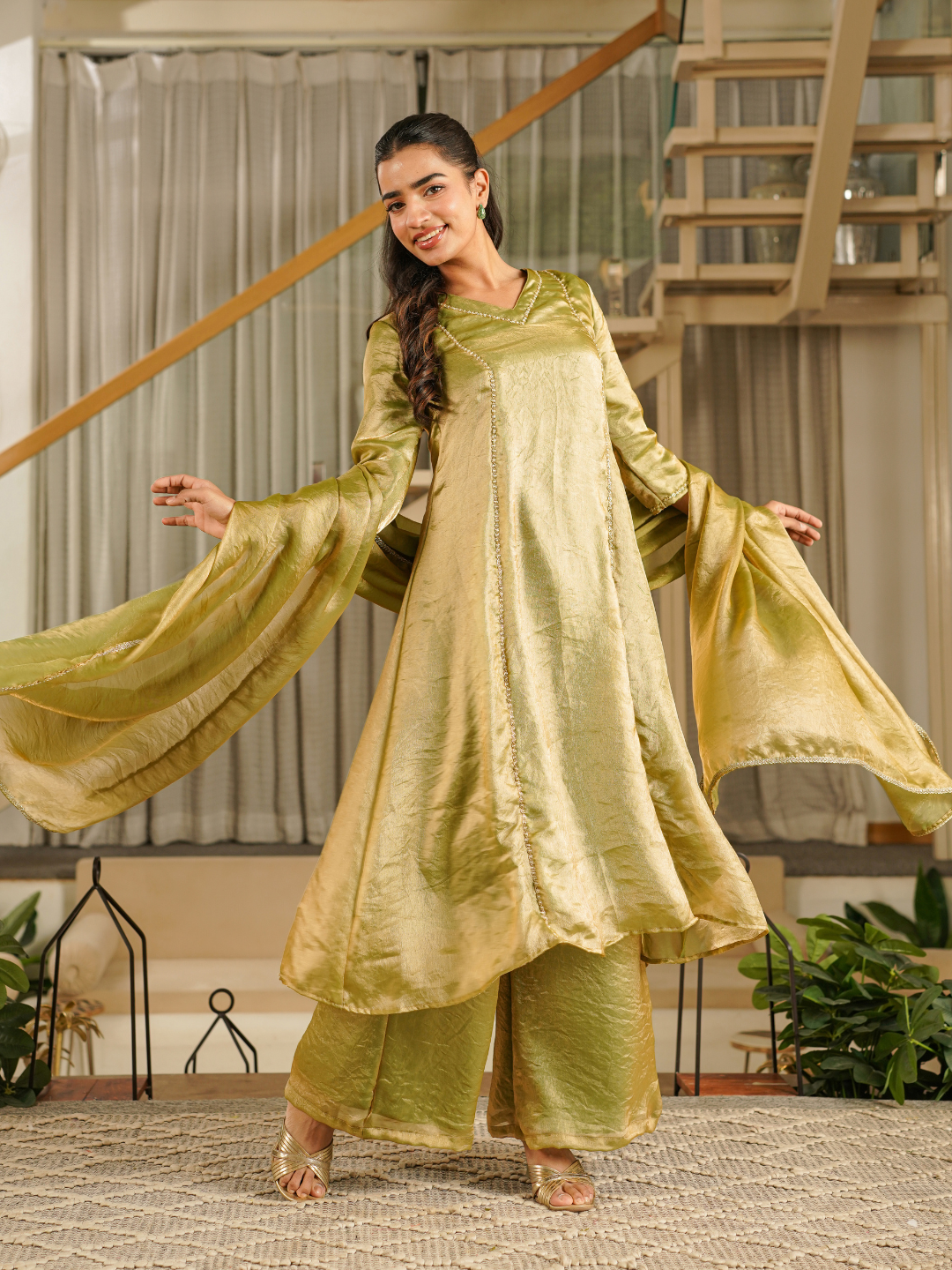 ZIVARA DARK OLIVE INDO-WESTERN SET
