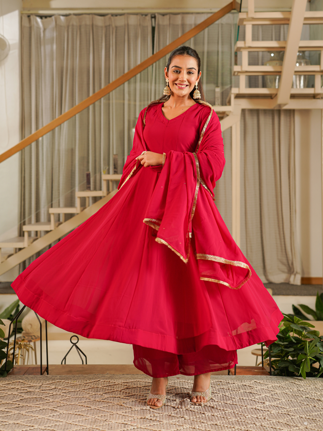 GLAM RED GEORGETTE KURTA SET