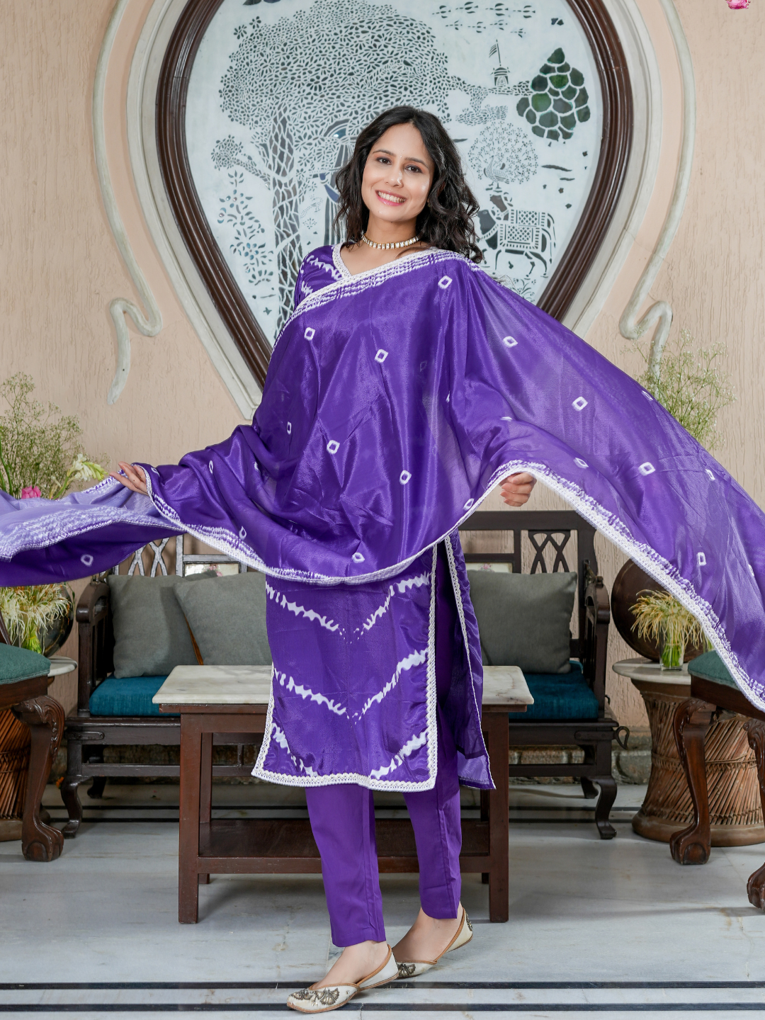 MIHIRA ROYAL PURPLE BANDHANI KURTA SET