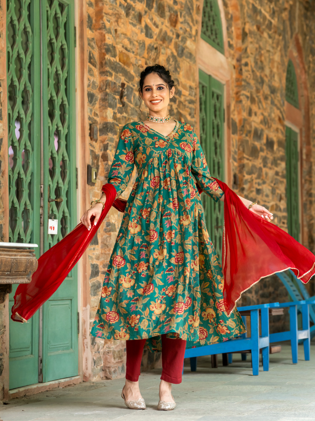 TEAL ELEGANCE FLARED KURTA SET